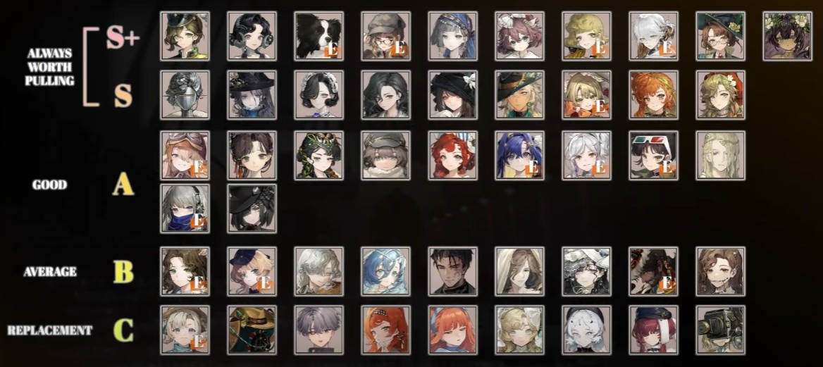 리버스:1999는 버전(1~2개월)별로 캐릭터들의 티어가 달라지는 게임입니다. 아래의 표는 현재 진행 중인 버전의 최신 티어표입니다. 가장 상단에 위치한 캐릭터들은 뽑아주시는 게 좋고 나머지는 자신의 상황에 맞게 챙겨가시면 되겠습니다.